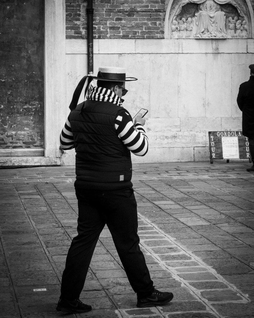 I may use this image as a link to the Decisive Moment assignment – as every time he places his foot on the deck of a wet and moving gondola is a decisive moment!